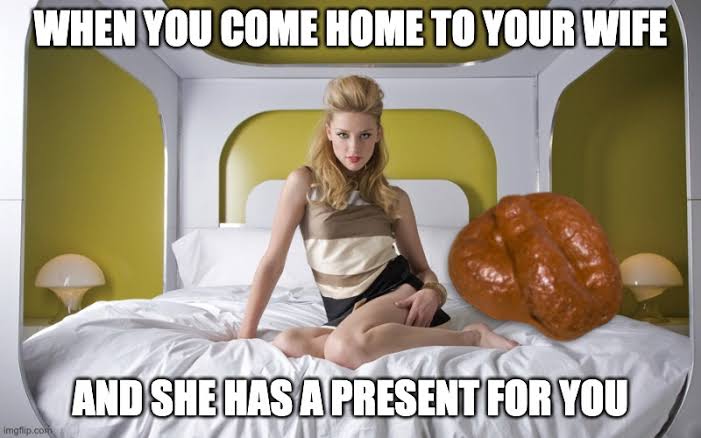 To which his wife responds: "He wasn't kissing my neck. He was whispering in my ear. He told me he was gay, thought you were cute, and asked me if we had any vaseline. I told him it was in the bathroom. Be strong honey. I love you too!!"
